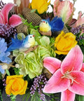 This elegant tombstone saddle brings timeless beauty to a cherished resting place. Measuring 32 inches wide, it features a classic elongated design adorned with a carefully curated selection of garden blooms. Hydrangeas, Stargazer lilies, daisies, delphiniums, tulips, and roses blend in soft pastel hues, complemented by delicate heather, pussy willow accents, and flowing greenery. The airy composition celebrates the natural splendor of spring and summer gardens, creating a peaceful tribute that honors memory with grace and botanical charm throughout the seasons.